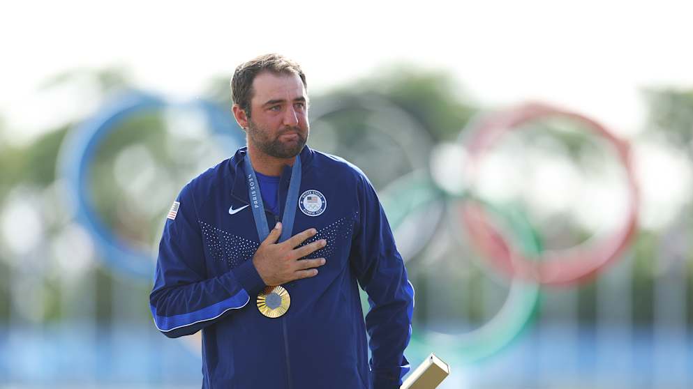 "I'm proud to be sitting here with a gold medal," said Scheffler, who was in tears on the podium as the Star Spangled Banner played.